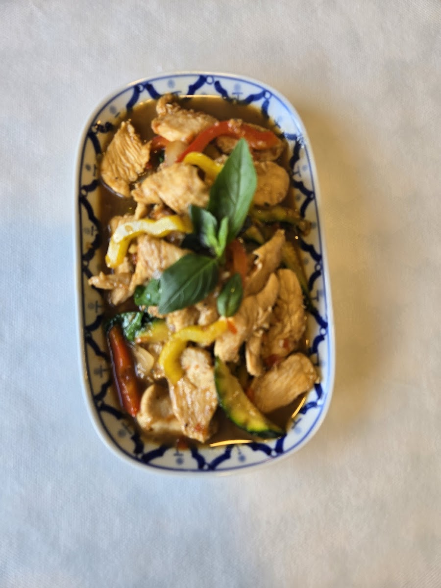 The menu leans into classic Thai-inspired comfort dishes, prepared with care and balanced flavors. One of the standout plates is the Poulet Au Curry Rouge, rich and fragrant without being overwhelming. It delivers warmth and depth, making it a favorite among regulars. Just as satisfying is the Poulet Au Basilic, where fresh herbs lift the dish and create a clean, aromatic finish that feels both light and filling.